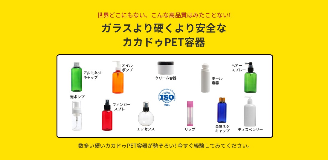 化粧品容器 薬ピルケース ドリンクボトル 容器コンサルティングはカカドゥにお任せ! plasticyoki.jpはプラスチック容器・PETボトル専門のBtoB販売サイトです。 化粧品、食品、飲料、健康食品、医薬品、アルコール、日用品、化学用途など幅広い用途に対応するプラスチック容器を取り扱っています。 当サイトでは5000種類以上のプラスチックボトルを取り揃えており、小ロット100個から注文可能です。化粧品ボトル、スプレーボトル、ポンプボトル、食品容器など、用途や容量に合わせて最適な容器をお選びいただけます。 韓国自社工場で製造しているため安定した品質と供給を実現しており、OEM製造やオリジナル容器の開発にも対応しています。容器メーカーとして長年の経験を活かし、容器選定から製造までトータルでサポートいたします。 用途、容量、キャップサイズなどの条件から容器を検索でき、ビジネス用途に最適な容器を簡単に見つけることができます。サンプル請求やお見積りのご相談もお気軽にお問い合わせください。 ラインでお問い合わせ お問い合わせ E-MAIL : admin@plasticyoki.jp 〒812-0011 福岡県福岡市博多区博多駅前4丁目13-27 グランドハイツ博多216 メールまたはラインでお問い合わせください