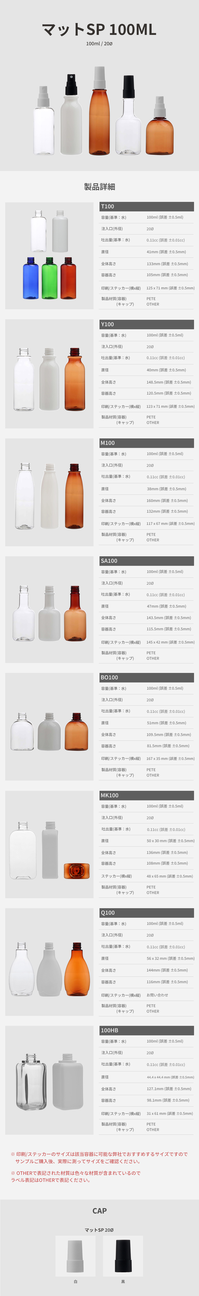 ボトル「化粧品容器」マットスプレー 100ml (20Ø) ボトル_ロット100個