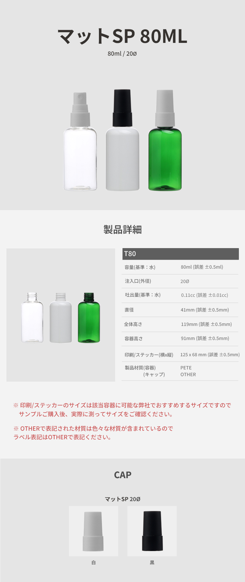 前の商品 次の商品 ボトル「化粧品容器」マットスプレー 80ml (20Ø) ボトル_ロット100個 ¥13,800 ボトル「化粧品容器」マットスプレー 80ml (20Ø) ボトル_ロット100個 商品名: マットスプレー 80ml (20Ø) ボトル 容量(ミリリットル): 80ml ボトルの色を選ぶ 選択してくださいT80_透明(ロット:100個)T80_白(ロット:100個)T80_緑(ロット:100個) キャップの色を選ぶ 選択してください透明白黒クリア ボトル「化粧品容器」マットスプレー 80ml (20Ø) ボトル_ロット100個個 お買い物カゴに追加 商品コード: 該当なし カテゴリー: 消毒剤容器, スプレー15ml~110ml, 化粧品容器, フィンガースプレー, PET 説明 追加情報 レビュー (0) 説明 ボトル「化粧品容器」マットスプレー 80ml (20Ø) ボトル_ロット100個 追加情報 重さ 1 g ボトルの色を選ぶ T80_透明(ロット:100個), T80_白(ロット:100個), T80_緑(ロット:100個) キャップの色を選ぶ 透明, 白, 黒 レビュー レビューはまだありません。 “ボトル「化粧品容器」マットスプレー 80ml (20Ø) ボトル_ロット100個” の口コミを投稿します コメントをキャンセルメールアドレスが公開されることはありません。 ※ が付いている欄は必須項目ですレビュー *名前 * メール * 次回のコメントで使用するためブラウザーに自分の名前、メールアドレス、サイトを保存する。 関連商品 クイックビュー クイックビュー 化粧品容器, ネジキャップ, AL(アルミニウム)ボトル「化粧品容器」アルミネジキャップ E120ml (100個) ¥18,000 オプションを選択 この商品には複数のバリエーションがあります。 オプションは商品ページから選択できます クイックビュー クイックビュー 化粧品容器, ネジキャップ, 基本形ボトル「化粧品容器」ネジキャップ E50ml (200個) ¥16,000 オプションを選択 この商品には複数のバリエーションがあります。 オプションは商品ページから選択できます クイックビュー クイックビュー 化粧品容器, ネジキャップ, 基本形ボトル「化粧品容器」ネジキャップ E500/28 (148個) ¥22,200 オプションを選択 この商品には複数のバリエーションがあります。 オプションは商品ページから選択できます